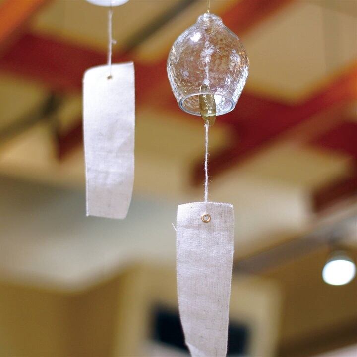 ガラス部分に真鍮のパーツが当たることで澄んだ綺麗な音色が空間に響きます。