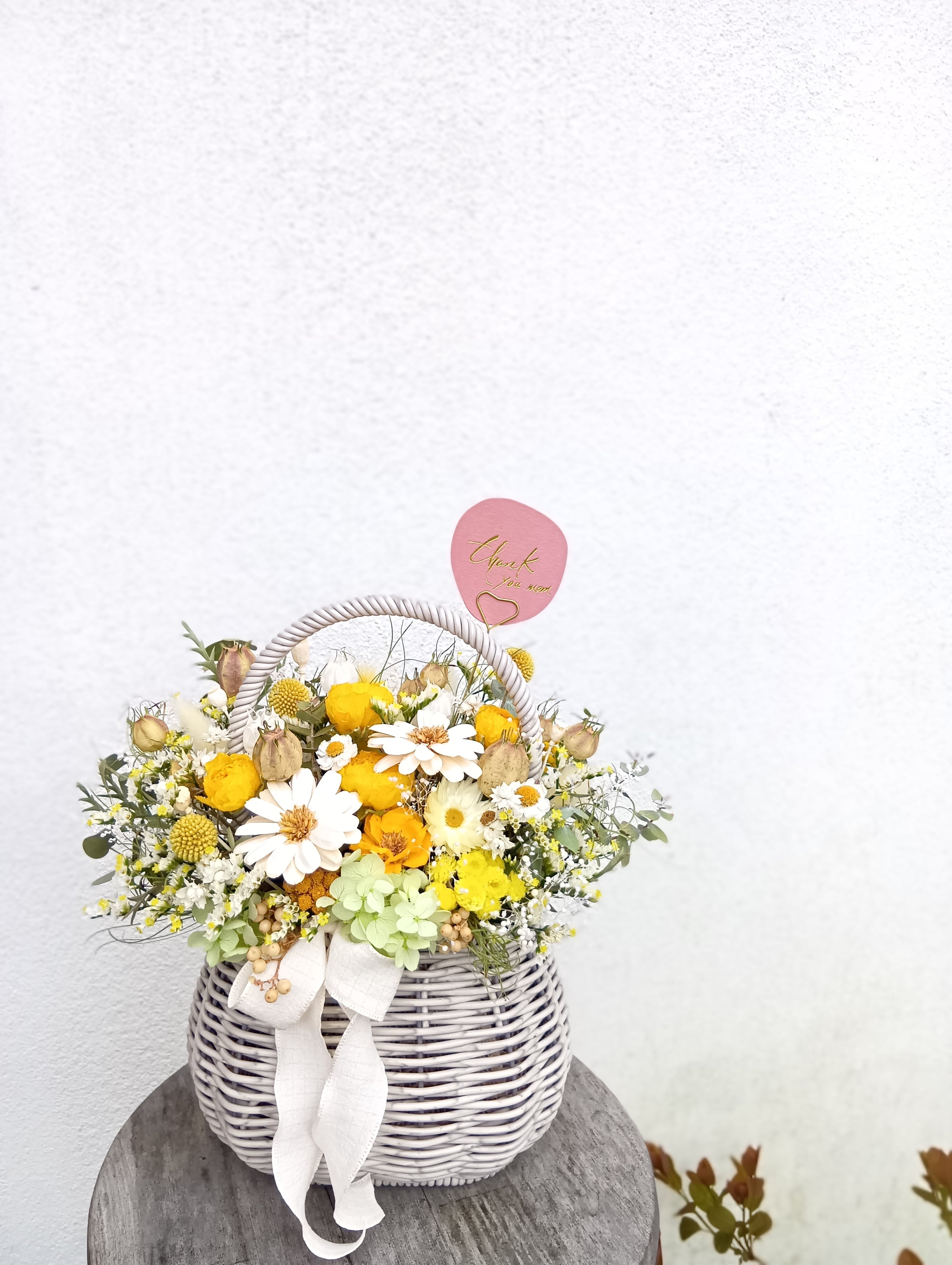母の日ギフト ⑅⃛ ドライフラワーバスケットMイエロー
